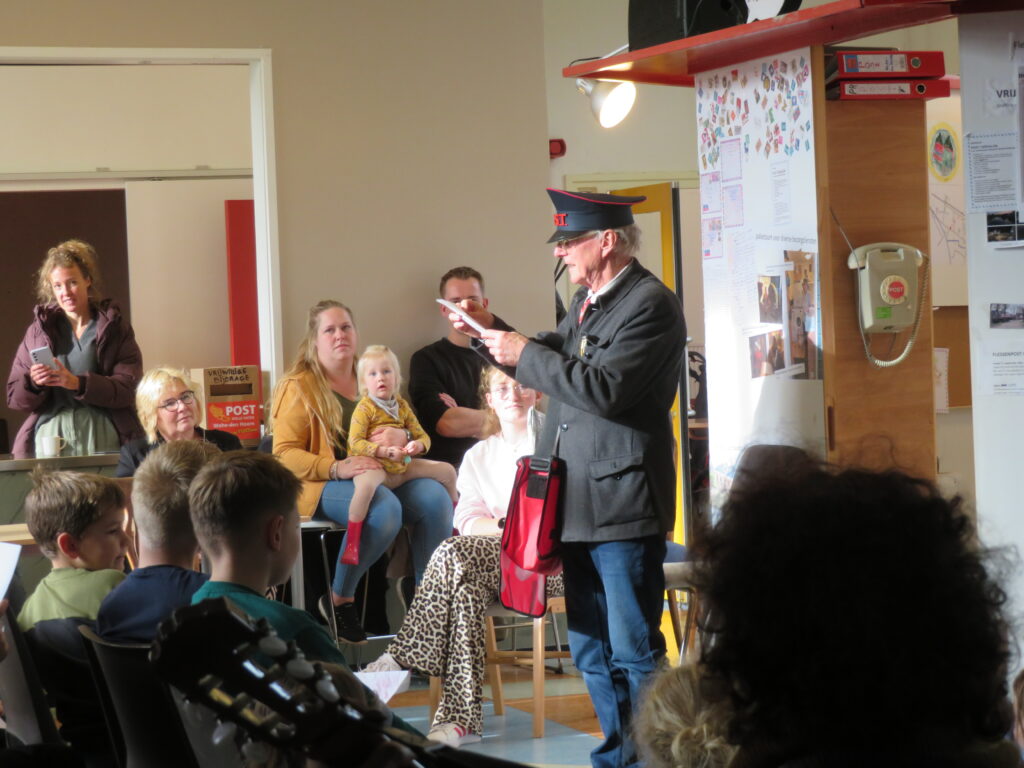 POSTbode Vincent, een echte verhalenverzamelaar, streek neer met zijn ‘reizende POSTkantoor’ in het Kultuurhoes.